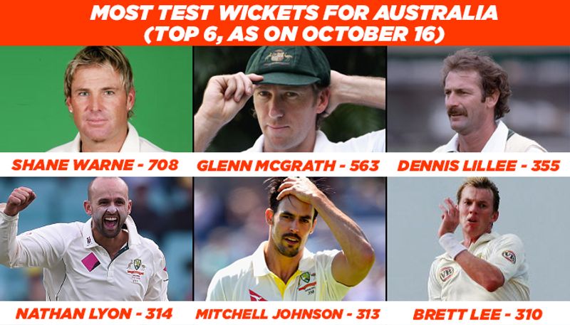 Lyon surpassed Brett Lee and Mitchell Johnson after taking four wickets in his first five overs. He had started the Test with 310 wickets.