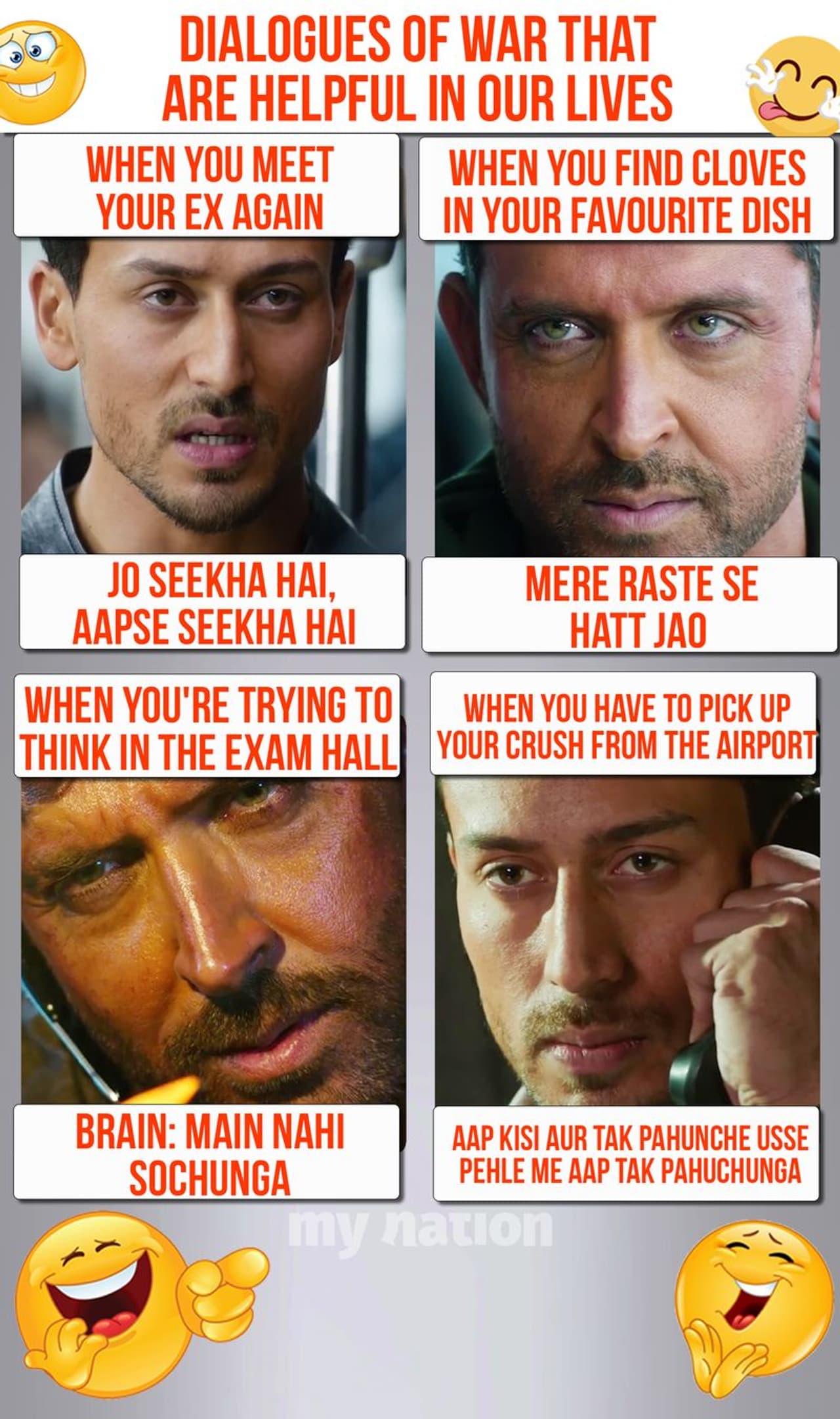 Just for Laughs on MyNation with the help of Hrithik Roshan and Tiger Shroff’s lines from the movie War shows examples of how one can use movie dialogues in real life situations