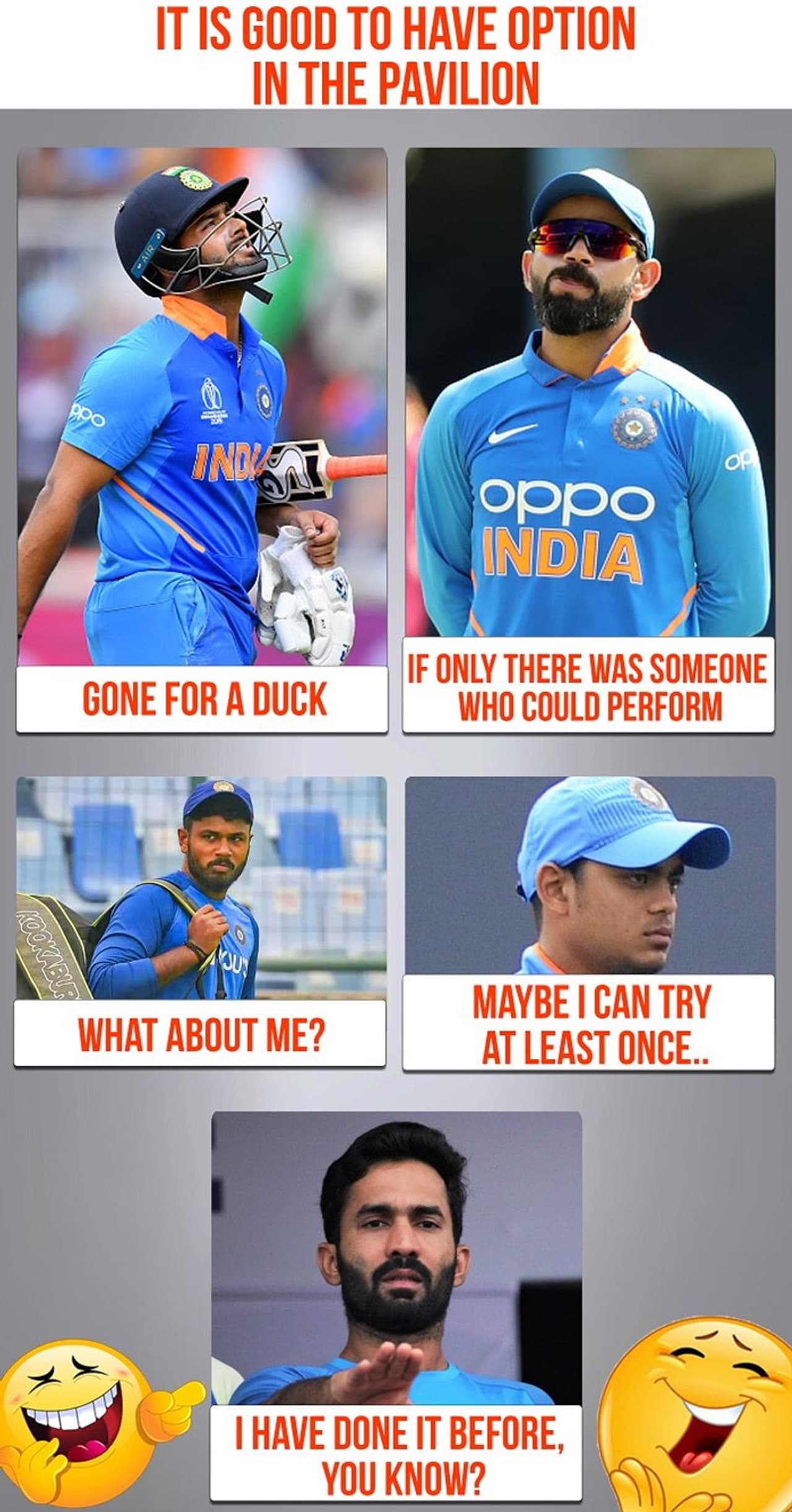 Rishabh Pant's duck after being promoted to third place in the recent T20 match against the West Indies has caused furore in social media and memeseters are having a field day