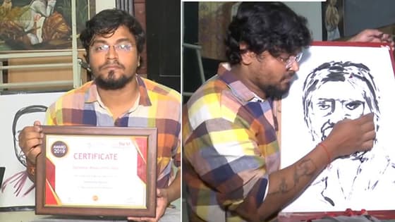 Hyderabad: An artist from Hyderabad has made it to the Guinness Book of World Records by painting the soldiers, who sacrificed their lives in the Pulwama attack while walking on a treadmill. "I made the portrait of the bravehearts, who sacrificed their lives in the Pulwama attack. This was done while walking on a treadmill for 45 minutes. My name has been recorded in the Indian Book of Record, Limca Book and Guinness Book of Records," Samudrala Harsha told ANI on Wednesday. He was recently invited as a guest on the Dubai National day and made the King's live portrait for which he received Indian fastest artists award. "In January this year, I completed my Doctorate in Celebrity live Sketches. First time I made it to the Guinness book of records and Indian Book of Record in 2012 when I attempted to paint 507 portraits in 24 hours nonstop without a break of a single minute for washroom or food," he said. Now Samudrala Harsha is preparing for another record by drawing portraits of 45 US President while walking on a treadmill which will be held in London in 2020. In this, the images will be projected by a projector. He also wishes to draw a portrait of Prime Minister Narendra Modi live in one minute.
