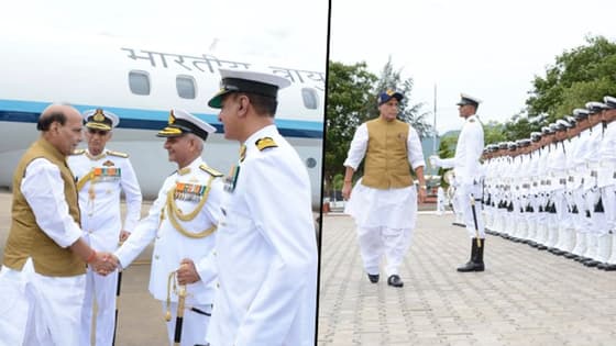 Rajnath was received by Admiral Karambir Singh, Chief of the Naval Staff (CNS) and Vice Admiral Atul Kumar Jain, Flag Officer Commanding-in-Chief, ENC and was presented a Guard of Honour.