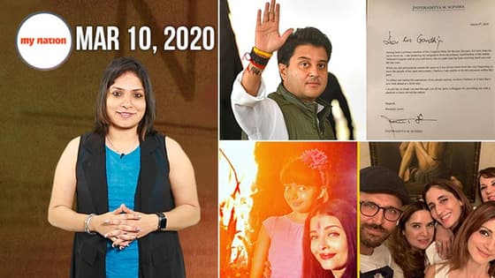Madhya Pradesh government faces a big blow after Jyotiraditya Scindia and 19MLAs in Bengaluru tendered their resignations to the Congress. Scinidia and gang, ready to join the BJP. Four children drown in pond on Holi. They were bathing after playing with colours when the incident took place in West Bengal. Villagers fished them out. First batch of 58 Indian pilgrims were brought back from coronavirus-hit Iran. Indian Air Force's C-17 Globemaster took off from Tehran and landed in Hindon Air Force Station in Ghaziabad on March 10. Watch MyNation in 100 seconds for the top stories of the day.