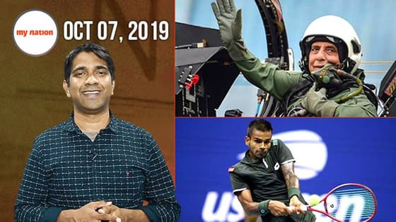Union defence minister Rajnath Singh, while leaving for France on a three-day visit on Monday, said that he is looking forward to deepening ties with the country. During his visit, he will receive the first of 36 Rafale fighter jets manufactured for India. Ahead of Indian Air Force Day, Sukhoi 30MKI aircraft carried out vertical Charlie manoeuvre as an aerial salute to the chief of air staff during a full dress rehearsal at Hindon Air Base in Ghaziabad. Indian tennis player Sumit Nagal moved up six places and achieved a career-best ranking of 129 in the latest Association of Tennis Professional (ATP) men's singles rankings issued on Monday. All this and more on MyNation in 100 seconds.