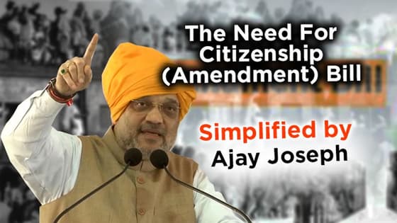 The issue that the nation is debating today is the Citizenship (Amendment) Bill. The opposition is training its guns against the government and even says that it would move the Supreme Court against it. We discuss the need for the Bill that would not treat Hindus, Buddhists, Jains, Parsis and Christians who have crossed over to India from Pakistan, Afghanistan or Bangladesh as illegal immigrants outrightly and would provide them with some relief. We also take a look at the measures taken by the government to provide for exemptions from Bill as Simplified by Ajay Joseph.