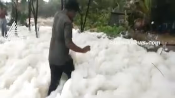 Around two feet of foam spread across 300 meters of shoreline was seen along the coast of Mundakkal region on June 10.