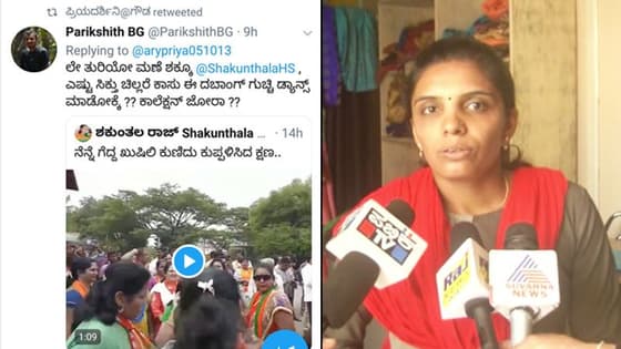 Tumakuru: NaMo Bharat worker Shakunthala Raj has accused JD(S) workers of shaming her, giving her life threats on Twitter. Shakunthala had posted a video of her dancing during the celebration of BJP candidate GS Basavaraj against JD(S) chief HD Deve Gowda in Tumakuru on May 23. She had posted this video on Twitter, which received abusive replies. She was demeaned and insulted on the social media website. In one of the replies, she was referred to as a woman of loose character. She has filed a case against Priyadarshini Gowda and Pareekshit Gowda with Superintendent of Police, Tumakuru.