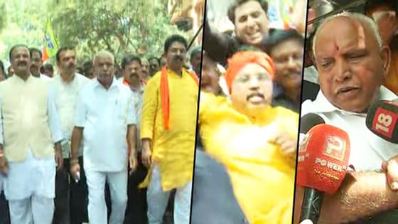 Bengaluru: BJP leaders, who staged a two-day sit-in protests against Karnataka government's move to sell 3667 acres of land to Jindal Steel (JSW), were on their way to lay siege to chief minister's official house Krishna, when the police stopped them at Shivananda Circle in Bengaluru. The rally of the BJP leaders was forcibly cut short as the police arrested BJP state president BS Yeddyurappa and dragged leader R Ashok, before pushing him into a bus and arresting him. This led to an argument between the police and the BJP leaders.