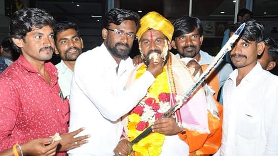 Kalaburagi BJP leader Sharanu Kolakura celebrated his birthday by cutting the cake with sword.
