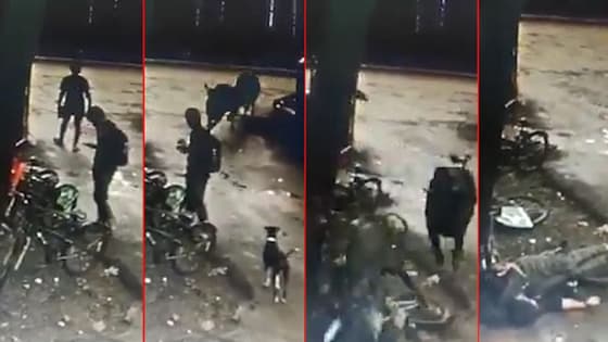 A shocking video shows a man, while looking at his phone, getting rammed by two cows in Mumbai. The man fell on a couple of two-wheelers. He was unconscious and passersby rushed him to a hospital.