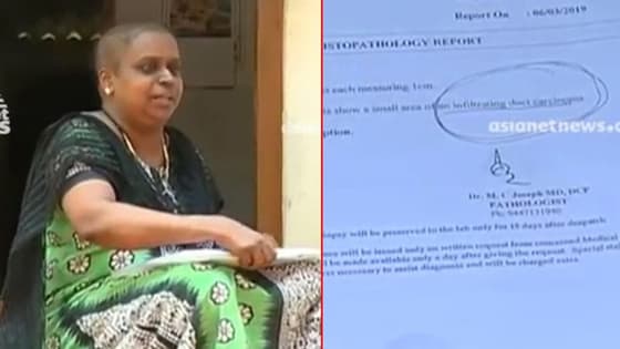 The Alappuzha native underwent chemotherapy in Alappuzha medical college for a lump on her chest which was diagnosed as cancer by a private lab. Samples were also sent to Medical College Pathology Lab for diagnosis. Based on this test result, the doctors directed for chemotherapy and other treatments.