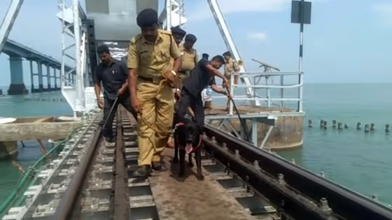 After receiving information of a bomb threat at the century-old bridge, V Jeganathan, divisional security commissioner, Railway Protection Force, inspected the bridge and reviewed its security with bomb detection and disposal, and sniffer dog squads.