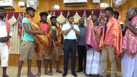 They were accompanied to the Ramanathapuram Collectorate by the fisheries department officials led by the deputy director of fisheries E Kathavarayan. On the other side, collector K Veera Raghava Rao received the fishermen and presented them with shawls.