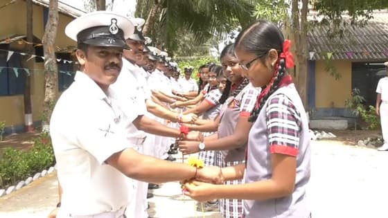 More than 50 school children tied rakhi to the Indian Navy soldiers in Ramanathapuram, Tamil Nadu, while the officials missed their family members during the occasion.