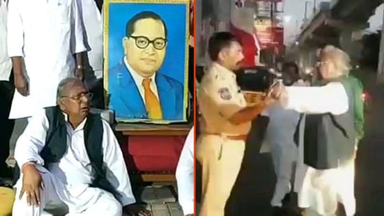 Hyderabad: Telangana Congress leader V Hanumantha Rao and former Amalapuram MP Harsha Kumar were taken into police custody for allegedly trying to install a statue of BR Ambedkar at Punjagutta Centre in Hyderabad.