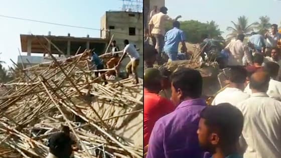 An under-construction building came crashing down in Dharwad, Karnataka. As many as a hundred people are feared trapped in the rubble. The building belongs to the relatives of mines and geology minister Vinay Kulkarni