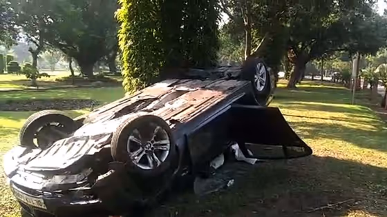 The car had turned turtle in a side lawn by Akbar road and the cops found it in the same position on Sunday morning.