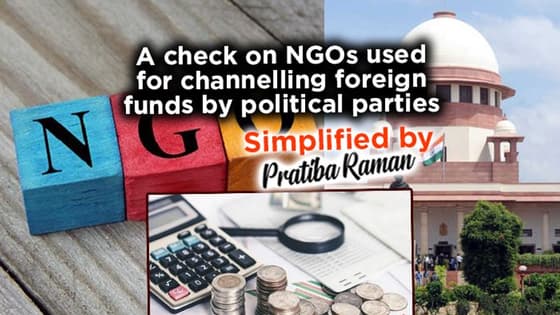 The Supreme Court made it clear that NGOs used for channelling foreign funds by political parties cannot escape the rigour of the Foreign Contribution Regulation Act when there is concrete material in this regard. The order was passed while hearing an appeal by an NGO, India Social Action Forum challenging the constitutional validity of Section 5 (1) and 5 (4) of the FCRA which relates to the procedure to notify an organisation of a political nature. Watch SimplifiedBy on MyNation to understand the intent and the objectives of the court, government and the FCRA.