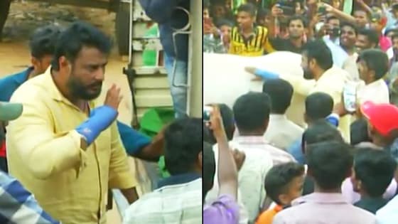 Mandya: On Wednesday, while Darshan was campaigning for Mandya's independent Lok Sabha candidate Sumalatha in Maddur, the Challenging Star was seen calming a raging bull off the road amidst the crowd. After the bull was moved aside, the farmers began to praise Darshan. This simple act from the Sandalwood actor won people's hearts at the political rally. Watch this video to know more.