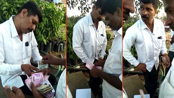 After the election campaign of former Karnataka chief minister Siddaramaiah, some of the Congress workers were seen distributing Rs 2,000 notes to some people to influence the voters