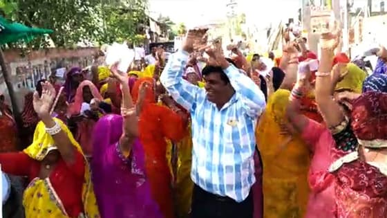 Women voters in Ajmer, Rajasthan are seen celebrating as they went to cast their ballots for the Lok Sabha elections. Over 13% voting was registered in the first two hours of polling in 13 Lok Sabha constituencies in the state, which began at 7 am on Monday.