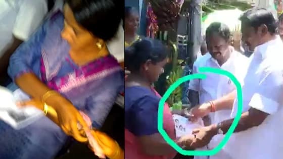 Salem/Theni: OPS supporters and Melasokkanathapuram ex-chairperson Savitha Arun Prasad was seen distributing money to people in Theni constituency, where OPS's son Raveendranath Kumar is a candidate. In another incident in Salem, chief minister Edappadi Palaniswamy was seen distributing money himself while seeking votes.