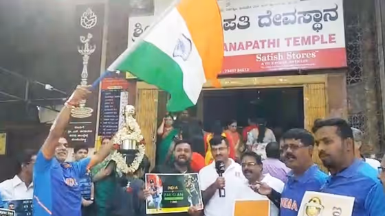 Bengaluru: India will take on Pakistan at Manchester in the World Cup match at 3 pm today. Ahead of India taking on its arch rival, Team India fans in Bengaluru offered special prayers at Doddaganapathi temple in Bengaluru.