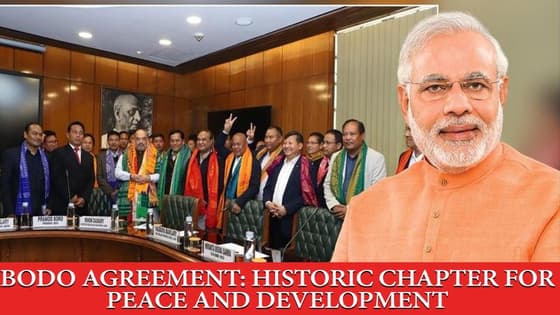 Prime Minister Narendra Modi has termed the Bodo Agreement as a historic chapter for peace and development in Assam. Hailing the Bodo Agreement, He said it is inspired by the mantra of 'Sabka Saath, Sabka Vikas & Sabka Vishwas' and spirit of 'Ek Bharat-Shresth Bharat'.
