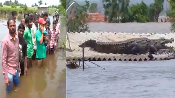 Belagavi: A video of a crocodile resting on top of a house in Karnataka has gone viral on social media. This happened in Belagavi which is hit by massive floods.