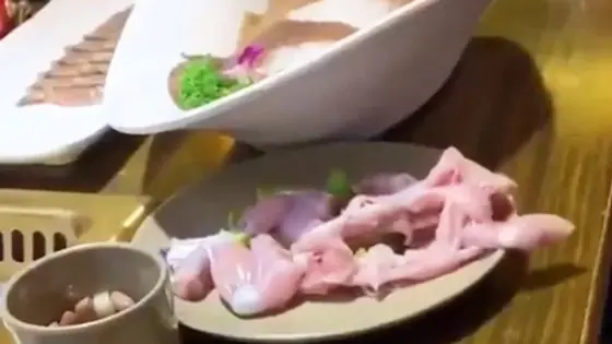Soon after the dish was served, a piece from the plate of chicken began to twitch and moved continuously before leaping off the plate and falling to the floor.