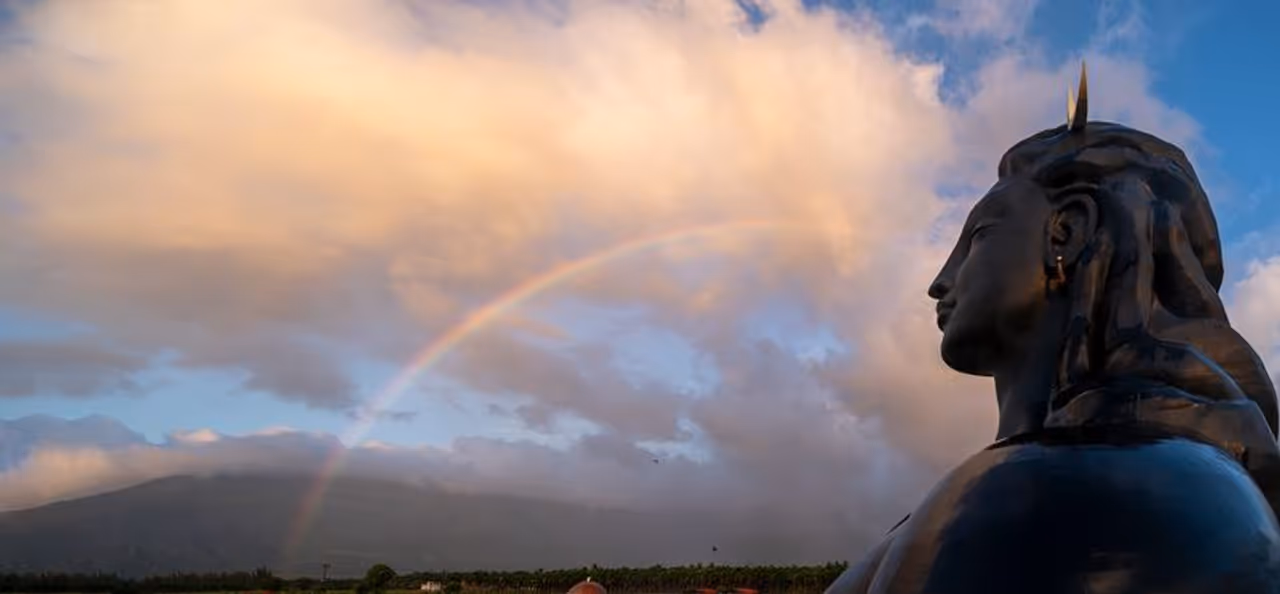 Here are some of the spectacular pictures from the Isha Yoga Center in Tamil Nadu where a stunning rainbow shined around the iconic face of “Adiyogi” who is the Source of Yoga