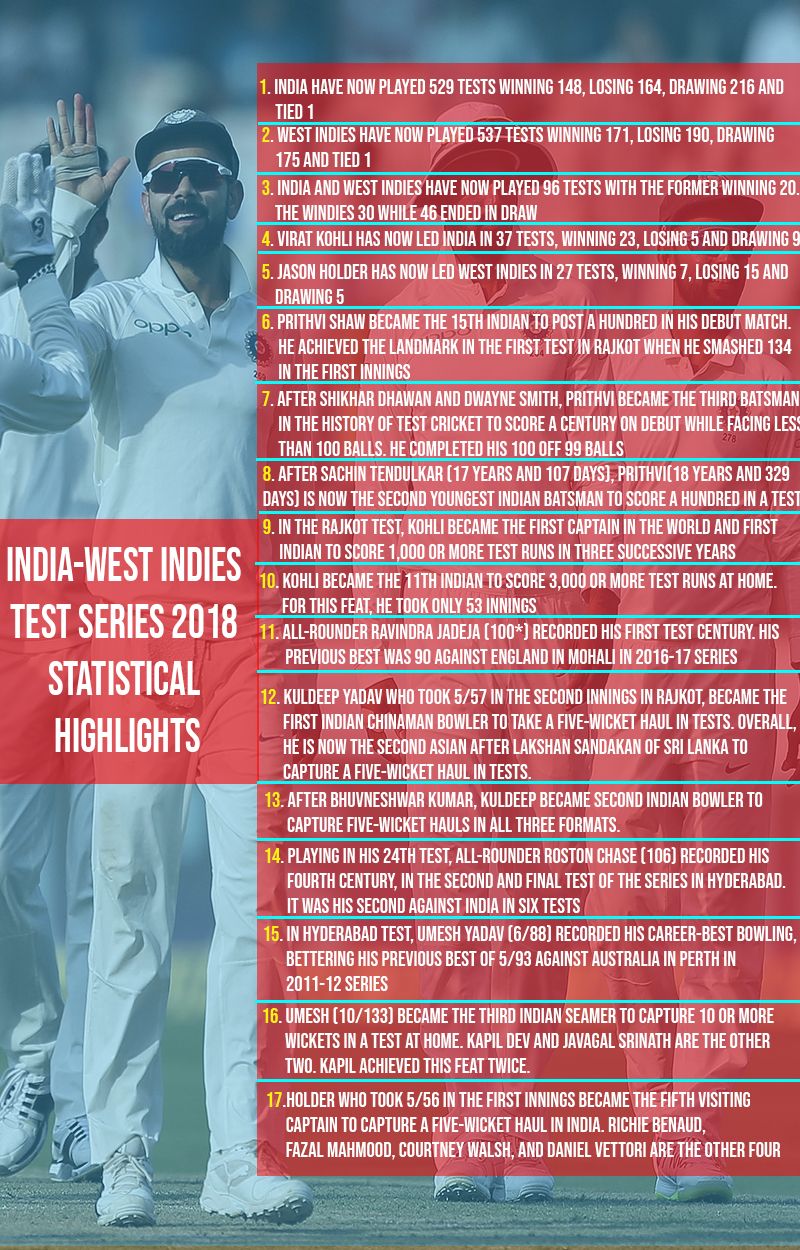 MyNation brings to you all the statistical highlights from the India-West Indies series.