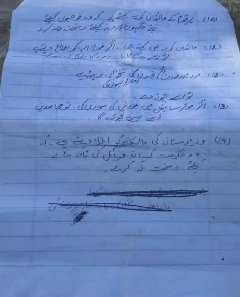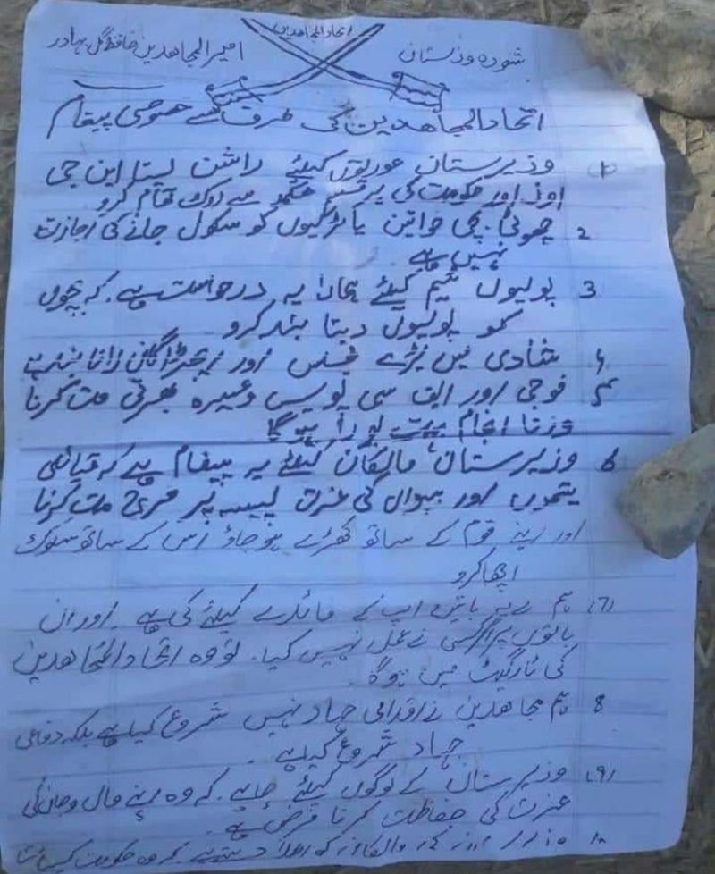 The letter has been issued in the name of Hafiz Gul Bahadur, the tallest leader of Pakistani Taliban and the supreme military commander of this branch of the Taliban.