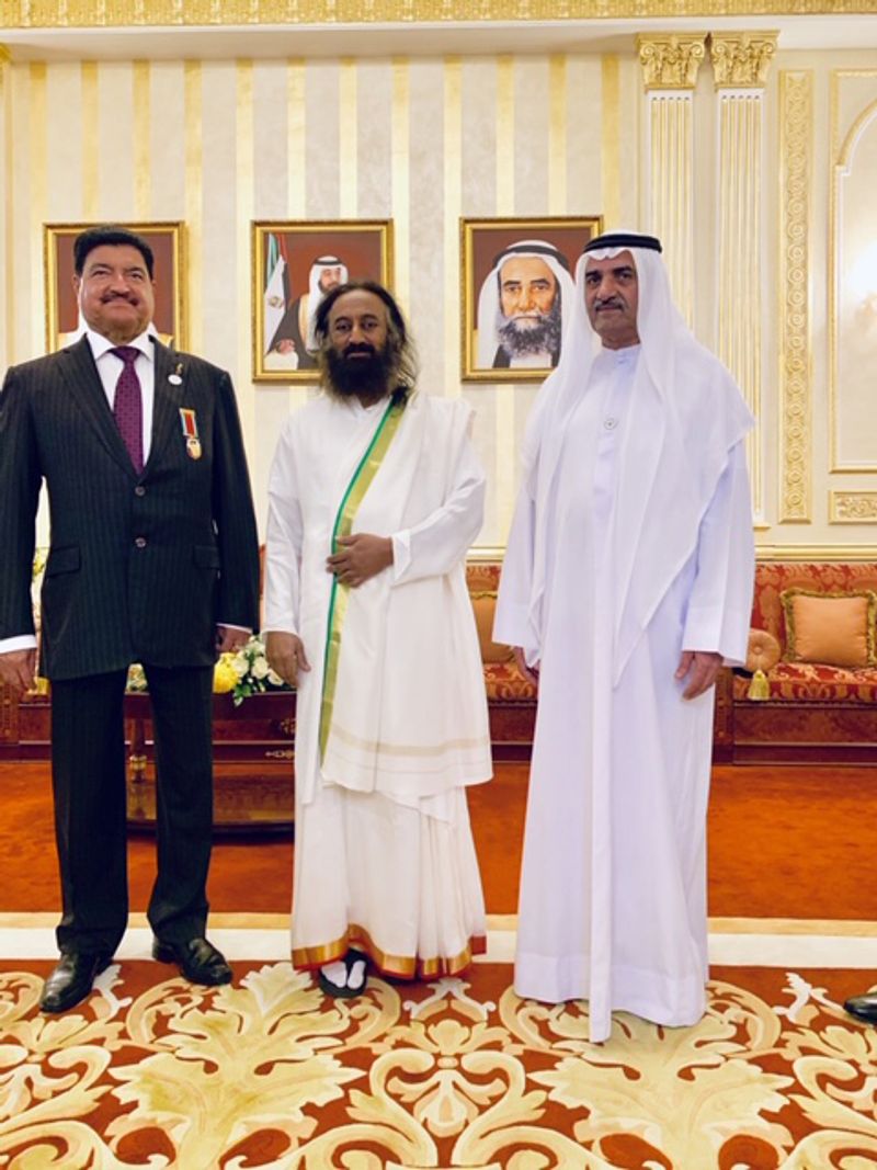 Earlier that day, Gurudev and the Art of Living delegation was accorded a warm reception at the royal palace in Al Rumailah. Gurudev is on a four-day visit to UAE after the ruler of Fujairah specially invited him.