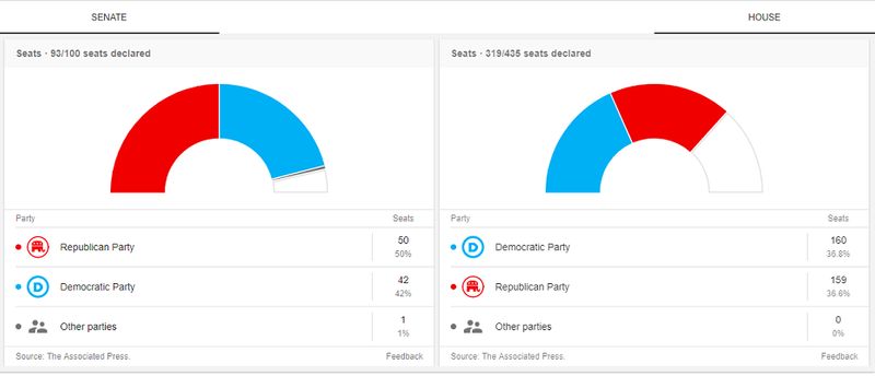The early wins give Democrats a share of the seats they'll need for House control. They won two seats in Florida, knocking off two incumbents there, and have won three seats in Pennsylvania, where court-ordered redistricting made the terrain more favourable to Democrats. They have also defeated a Republican incumbent in Minnesota.