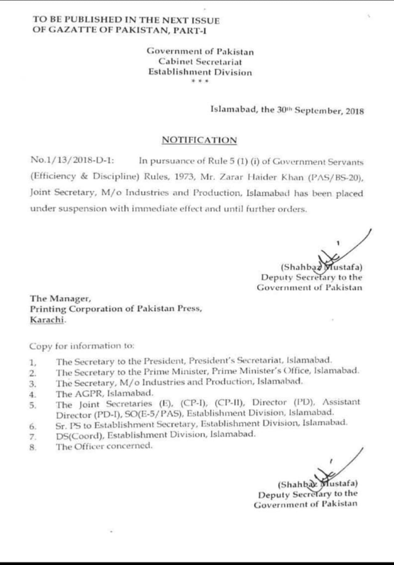 Egg on its face and left with no option, Imran government suspended the ‘thief’ bureaucrat.